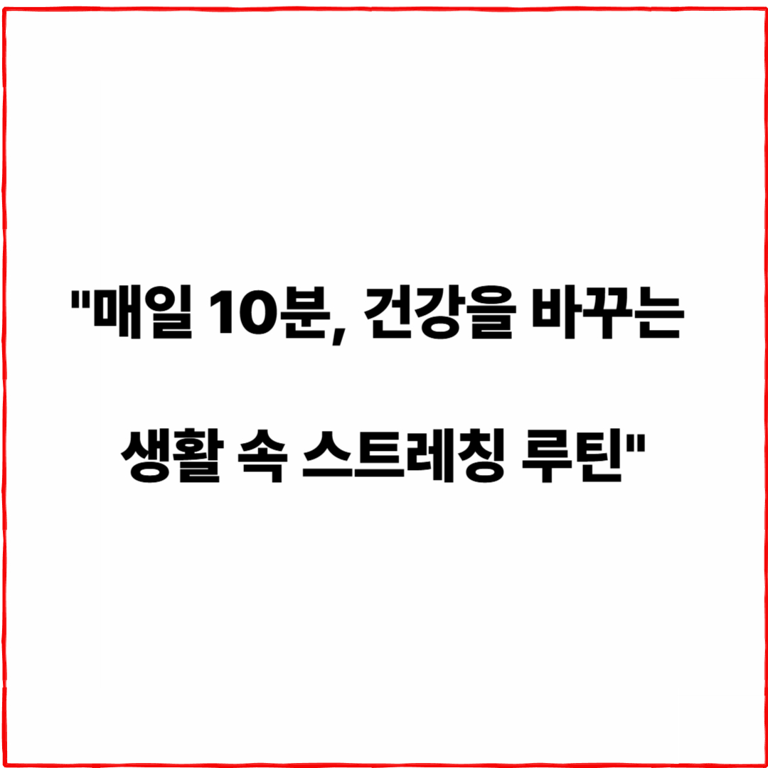 운동은 부담스럽고 시간이 없다고 느끼는 분들도, 스트레칭은 쉽게 시작할 수 있습니다. 매일 10분의 투자가 당신의 자세, 통증, 집중력, 심지어 수면의 질까지 바꿔줄 수 있습니다.